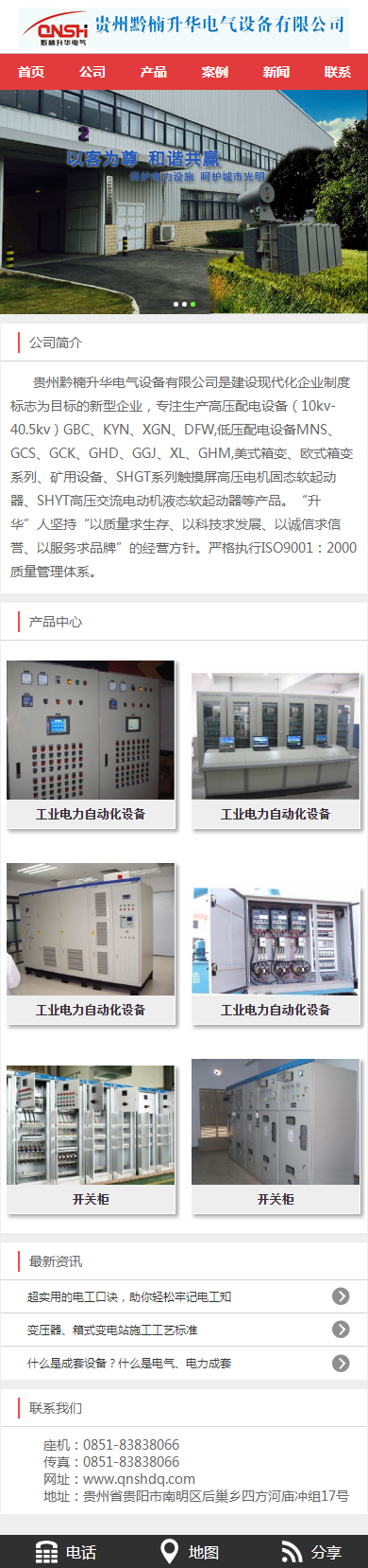 河北黔楠升华电气设备有限公司是建设现代化企业制度标志为目标的新型企业,专注生产高压配电设备(10kv-40.5kv)GBC、KYN、XGN、DFW,低压配电设备MNS、GCS、GCK、GHD、GGJ、XL、GHM,美式箱变、欧式箱变系列、矿用设备、SHGT系列触摸屏高压电机固态软起动器、SHYT高压交流电动机液态软起动器等产品。“升华”人坚持“以质量求生存、以科技求发展、以诚信求信誉、以服务求品牌”的经营方针。严格执行ISO9001:2000质量管理体系。